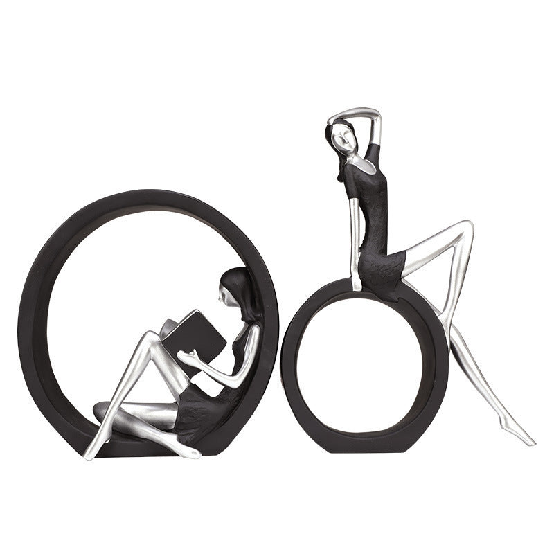 Art Girl är en modern prydnadsskulptur i abstrakt design, där två eleganta kvinnliga siluetter vilar i gyllene ringar. En hyllning till styrka, lugn och samhörighet. Perfekt som blickfång i vardagsrummet, på hyllan eller skrivbordet.