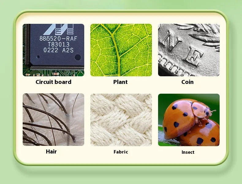 Descubra os pequenos detalhes do mundo com uma ampliação atĂ© 1000x e iluminação LED para imagens nĂtidas.